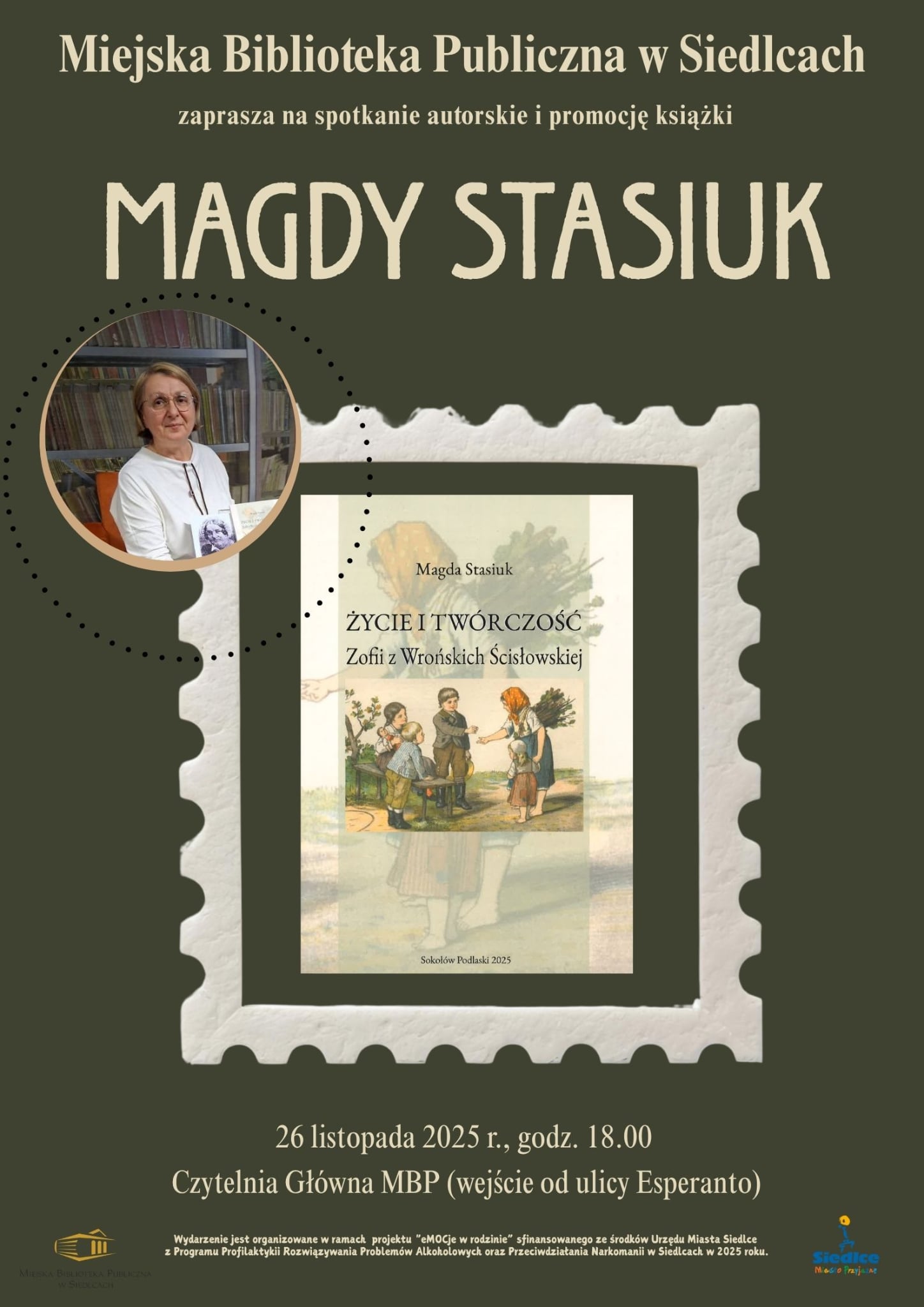 Miejska Biblioteka Publiczna w Siedlcach zaprasza na spotkanie autorskie Magdy Stasiuk, któremu towarzyszyć