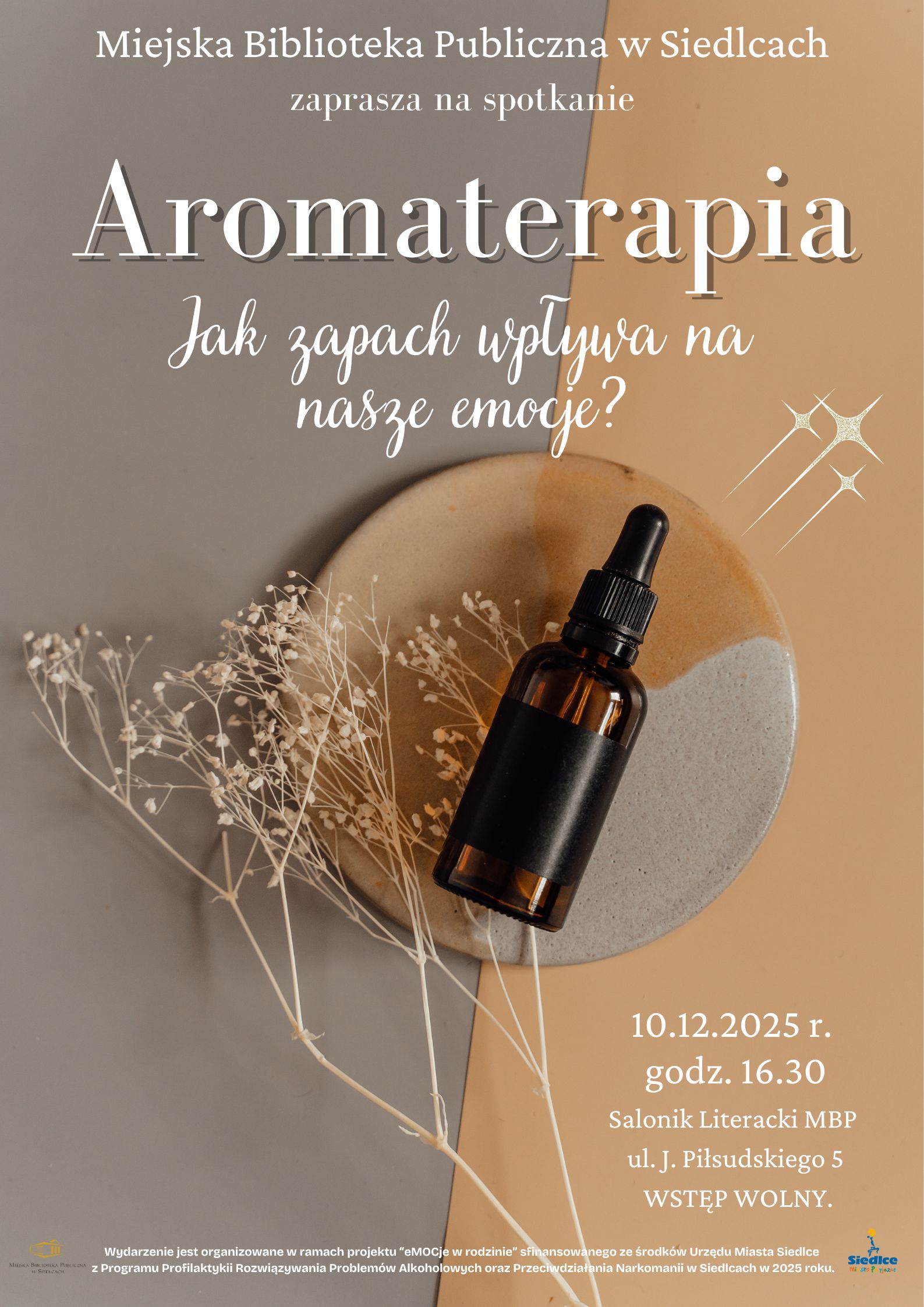 Spotkanie poprowadzi pasjonatka aromaterapii, która podzieli się praktycznymi wskazówkami