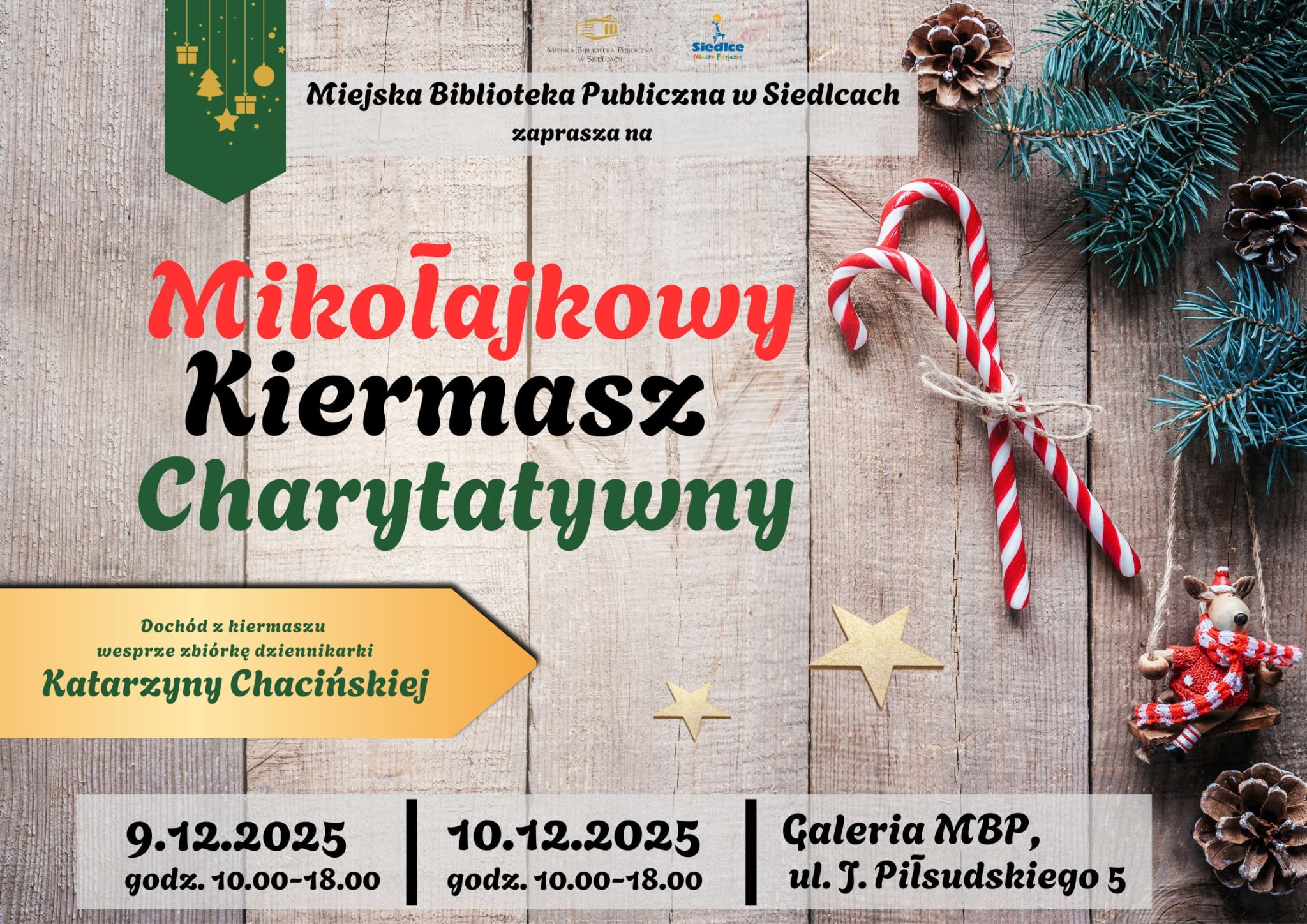 Zapraszamy 9 i 10 grudnia 2025 roku w godzinach od 10:00 do 18:00 w Galerii MBP, wejście od ul. J. Piłsudskiego.