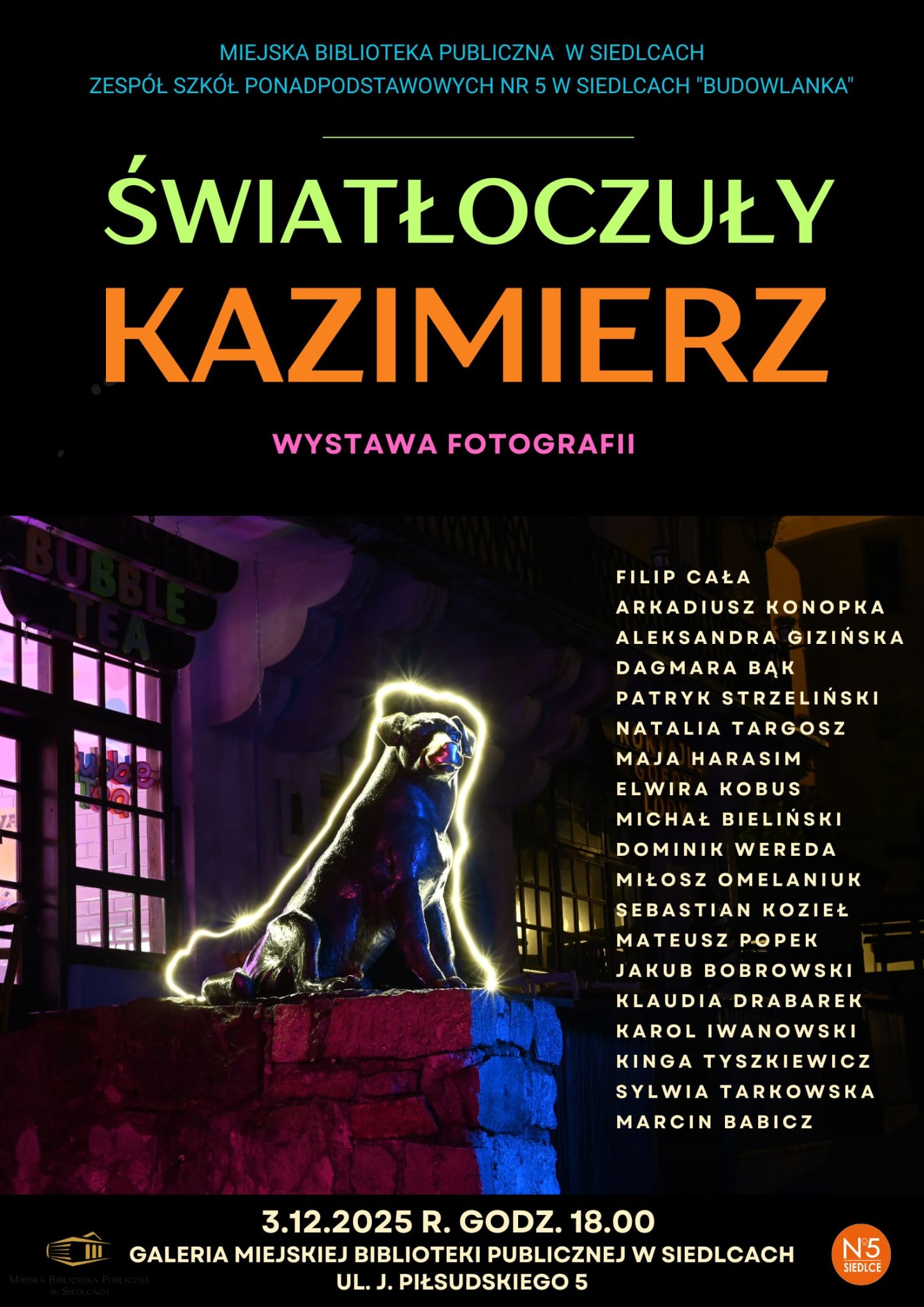 Miejska Biblioteka Publiczna w Siedlcach serdecznie zaprasza na wyjątkową wystawę fotografii pt. „Światłoczuły Kazimierz”. Prace tworzące wystawę powstały podczas trzydniowego IV Pleneru Fotograficznego Zespołu Szkół Ponadpodstawowych Nr 5 w Siedlcach "Budowlanka", który odbył się w Kazimierzu Dolnym nad Wisłą w maju 2025 roku.
