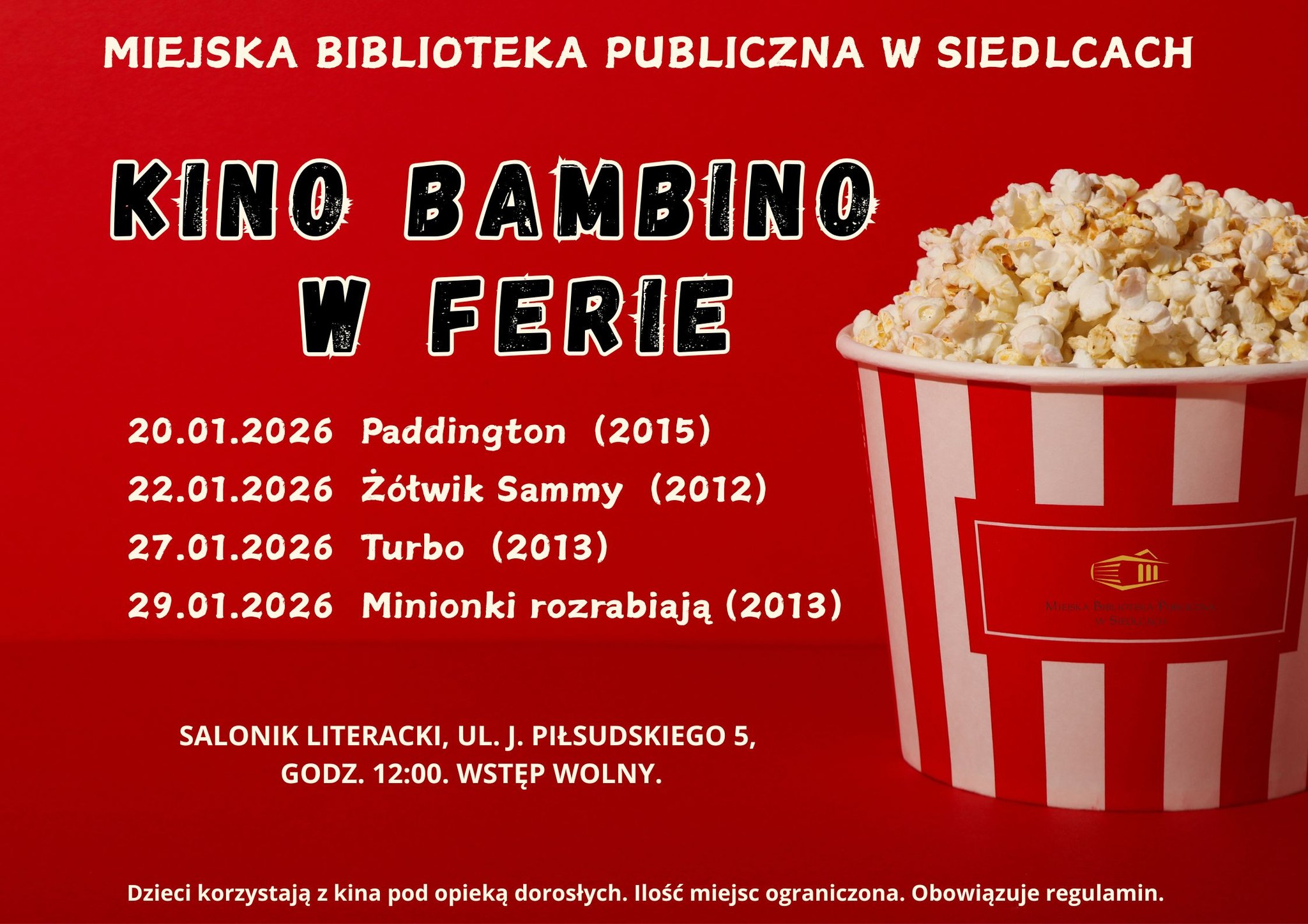 Informujemy, że użytkowników obowiązuje regulamin a dzieci korzystają z kina pod opieka osoby dorosłej.