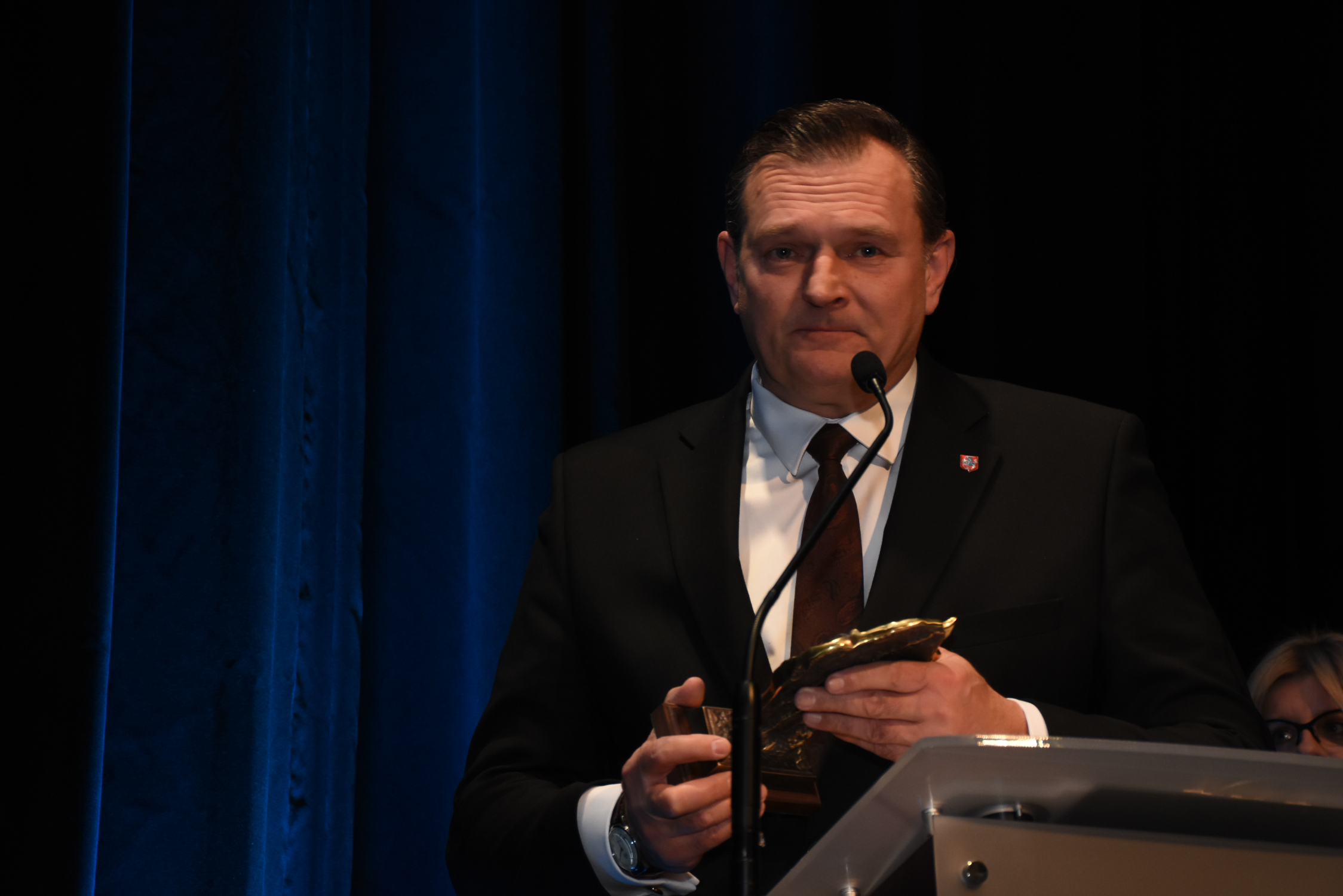 Statuetkę Wawrzyna Siedleckiego w imieniu Tomasza Hapunowicza Prezydenta Siedlce wręczył Maciej Nowak,